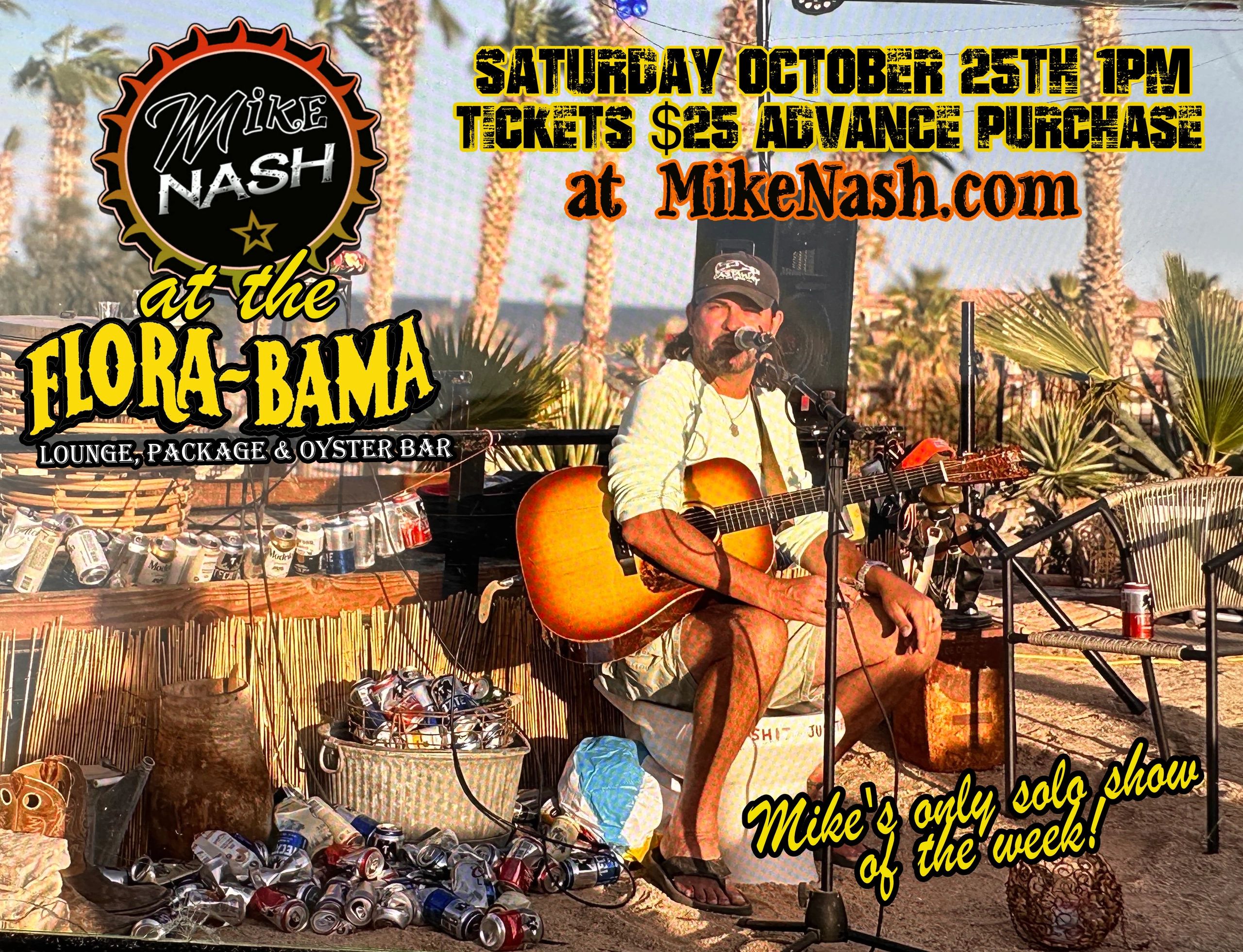 Join Mike at the Flora Bama Saturday afternoon for his only solo show of the week! 1-3:30pm